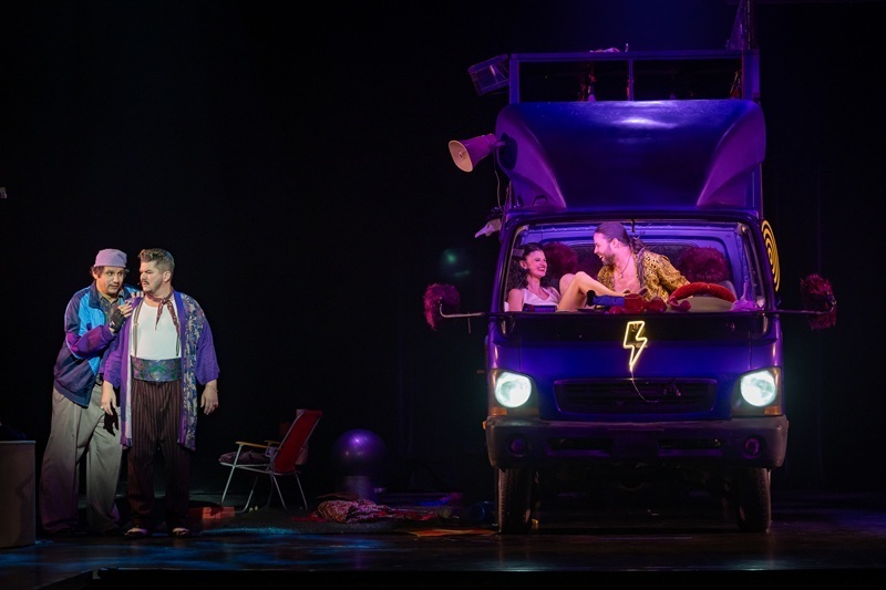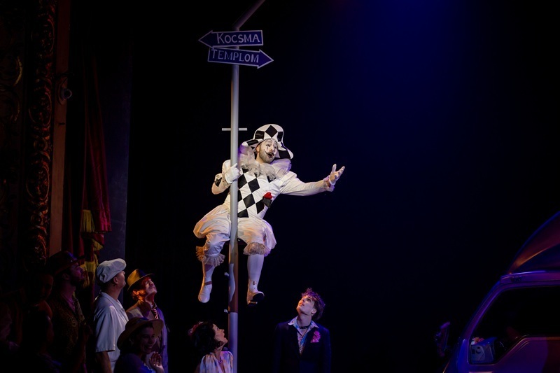 A rendező külön kiemeli: „Az előadásban egy vándortársulat jelenik meg, ahol együtt élnek és dolgoznak a színészek, cirkuszi figurák és a színpad mögött dolgozó emberek. Itt a különlegesség az, hogy a meghívott gólyalábason és akrobatákon kívül ezeket a szereplőket valóban a saját színházunk kellékesei, világosítói és díszítői alakítják – a saját világukat hozzák be a színpadra.”