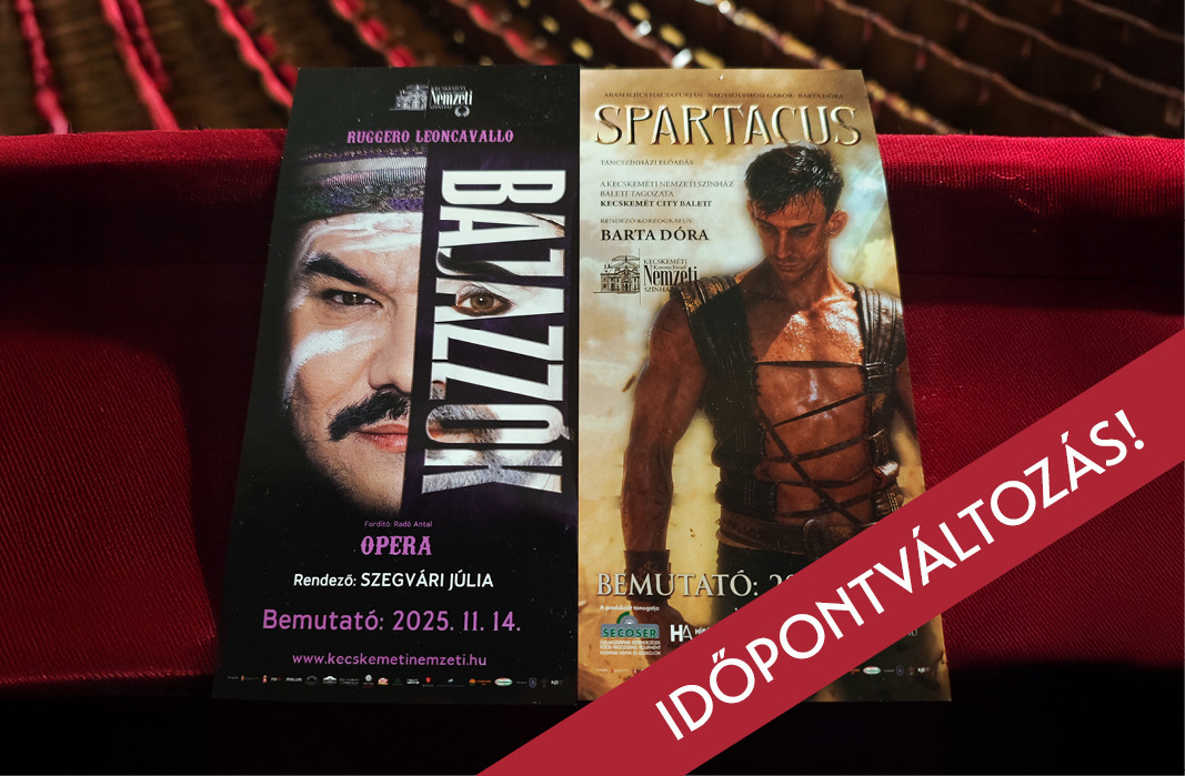 A november 29-én délután 15 órára meghirdetett Bajazzók - Spartacus előadás egy órával korábban, 14 órakor kezdődik. Az esti előadás kezdete marad a kiírt és megszokott 19 óra.