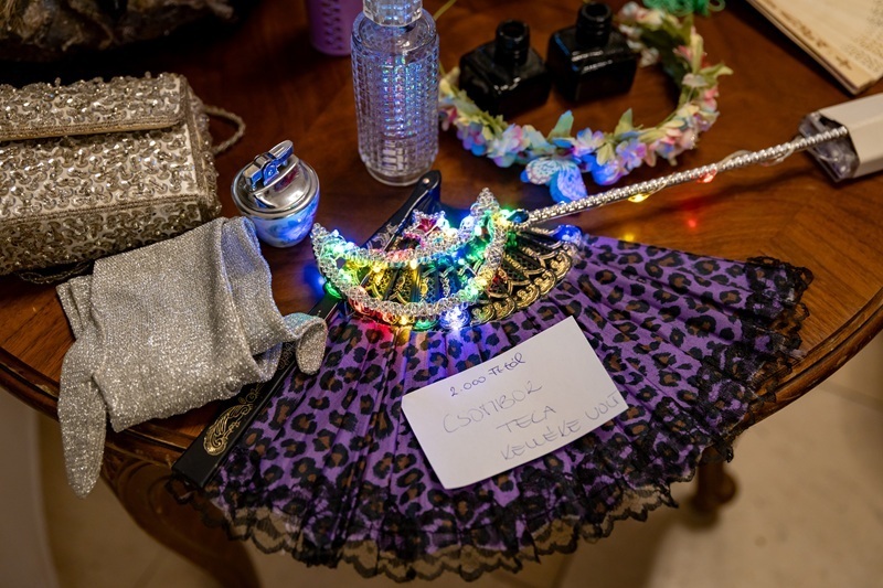 Számos különlegességre lehetett bukkanni ezúttal is az előcsarnokunkban, ami erre a napra egy varázslatos jelmezraktárrá változott át. Például Csombor Teréz számos jelmezét, Ganxta Zolee pólóját, elegáns táskákat kesztyűket, egy trükkös, duplafalú üveget vagy éppen az egyik mesedarabunk világító varázspálcáját is haza lehetett vinni.
